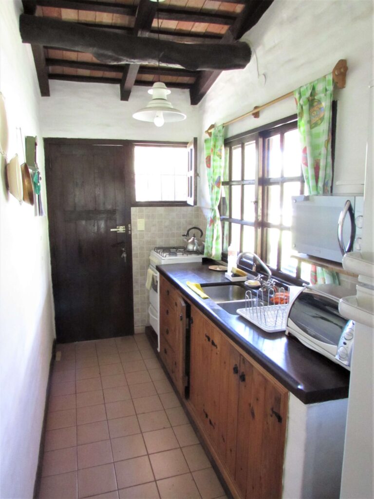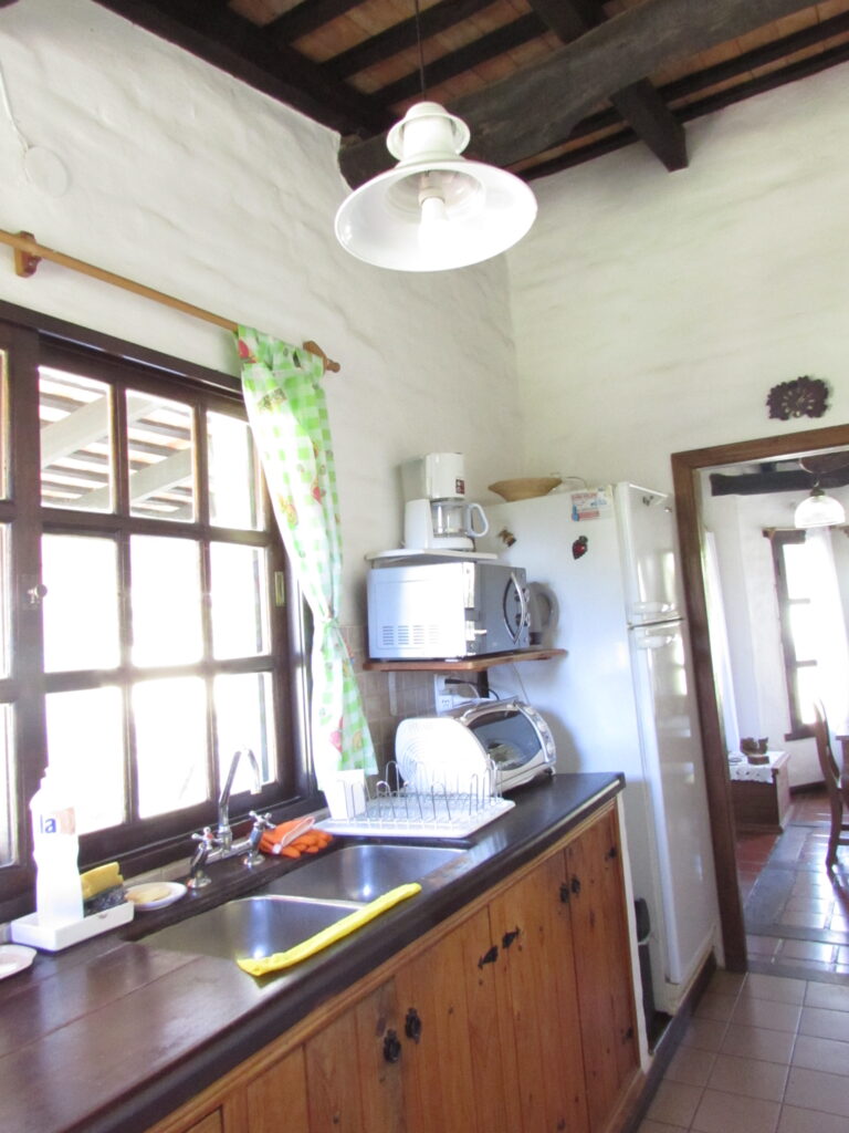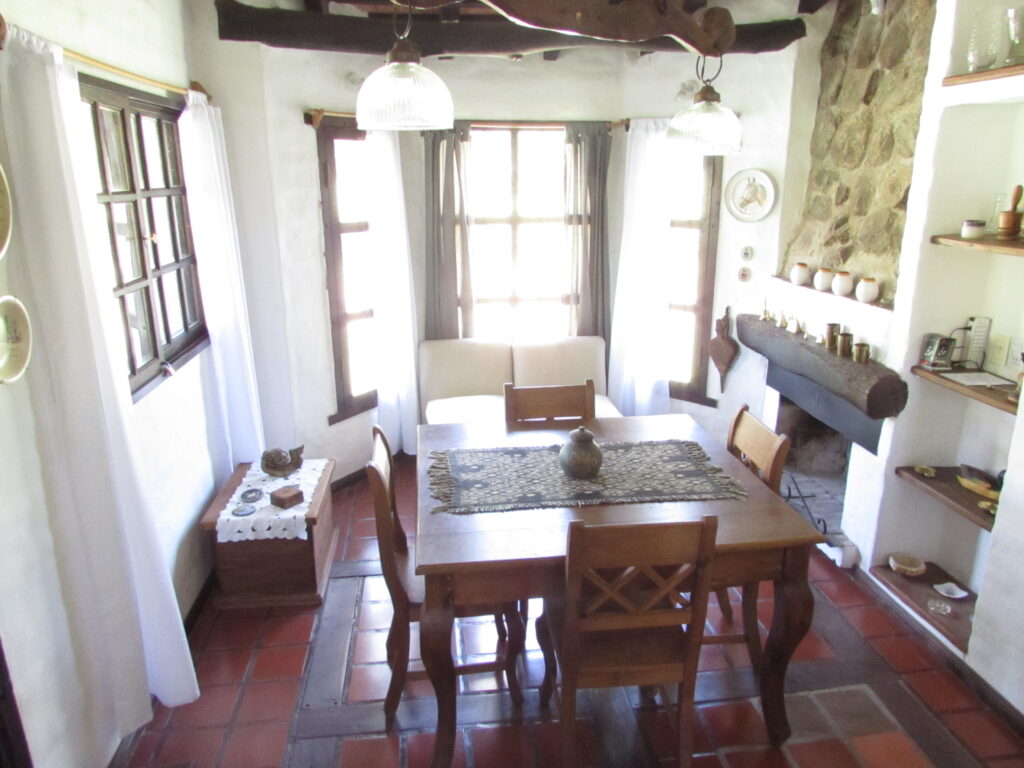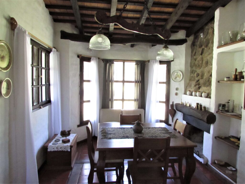Los ambientes son amplios, altos y frescos, de estilo colonial, ladrillo bolseado blanco y un techo hermoso de campo, con tirantes a la vista y tejuelas reconstituidas. Las aberturas son de madera, con mosquiteros y vistas privilegiadas al parque y las sierras en todos los ambientes.